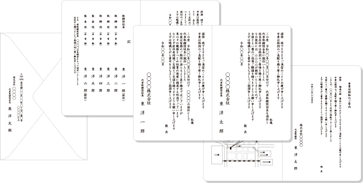 挨拶状印刷では封筒とカードがそれぞれセットになっています。用途に合わせて、ふさわしいタイミングで送付できるようにご準備ください。